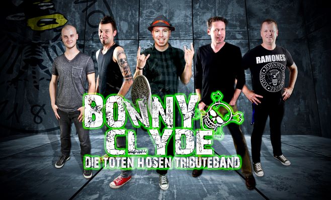 Dieser Ausnahmeband mit ihrer unvergleichlichen Show stehen die fünf Jungs aus Baden-Württemberg in nichts nach !!! Bonny & Clyde haben sich zum Ziel gesetzt, die Live Shows der „HOSEN“ so genau wie möglich zu interpretieren, d.h. nicht die Optik, also das Aussehen der Toten Hosen wird in den Vordergrund gerückt, sondern dass außergewöhnliche Live-Feeling, der positive Druck und die energiegeladene Party-Show wird von den fünf Musikern favorisiert und zu 100 % umgesetzt!