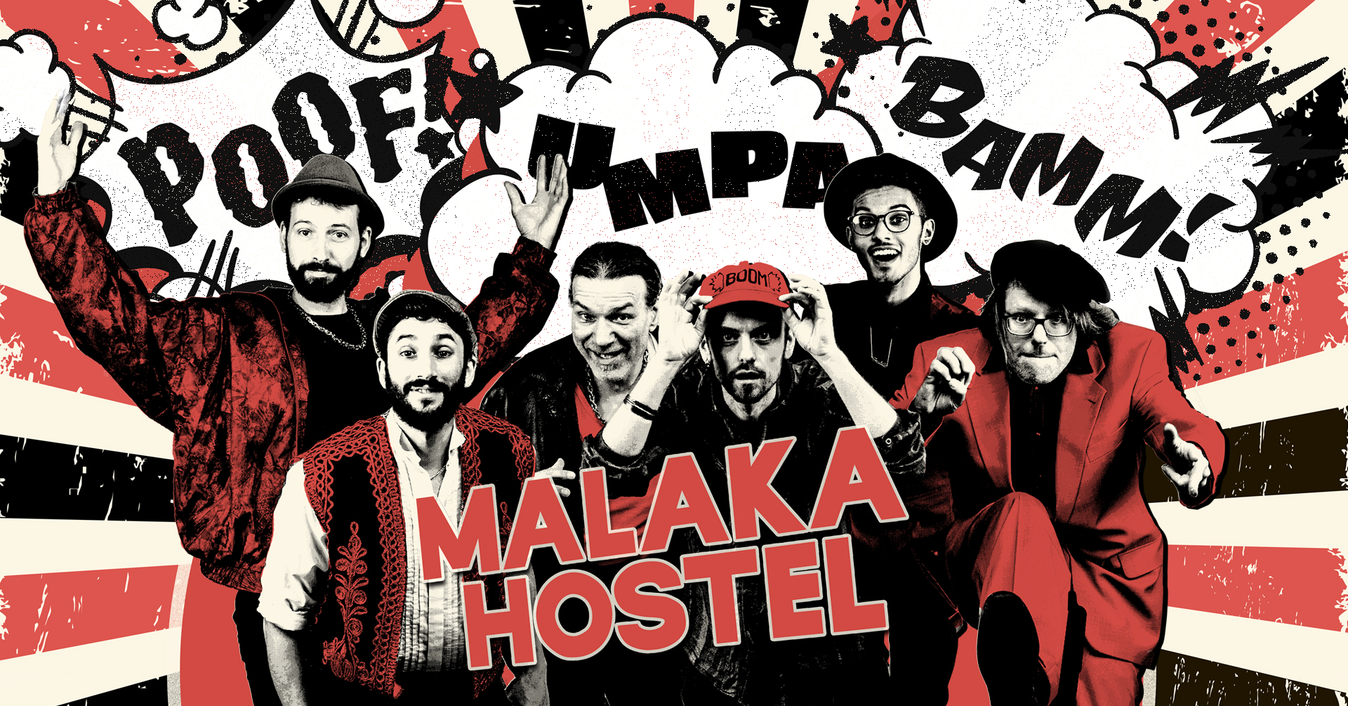 „Auf DIZKO FATALE werden Genre-Mauern eingerissen und Brücken zwischen ganzen Kontinenten gebaut." Freiburg ist der Heimathafen von Malaka Hostel, hier lernten sich die Weltenbummler kennen und beschlossen, ihre Geschichten, Reisen und Erlebnisse in ihren Liedern zu erzählen und gemeinsam zu zelebrieren. Sie haben die Welt und ihre Bewohner in ihrer wahnwitzigen Vielfältigkeit erlebt, lieben gelernt und in sich aufgesogen. Malaka Hostel entwickelten sich schnell von einem regionalen Geheimtipp zu einer Band, die europaweit auf Tourneen und Festivals den Ruf erlangte, mit wilden Kojotengesängen und ihrer energiegeladenen Live-Präsenz in ihren Bann zu ziehen. Mit der EP “Coyotes Del Amor” (2015) und dem Longplayer „Dizko Fatale“ (2019) spielte sich die bunte Truppe bis zum Beginn der Pandemie in die Herzen des Publikums. Nach langem Winterschlaf ist die frech-sympathische Truppe wieder bereit die Bühnen der westlichen Welt zu zerbrettern.