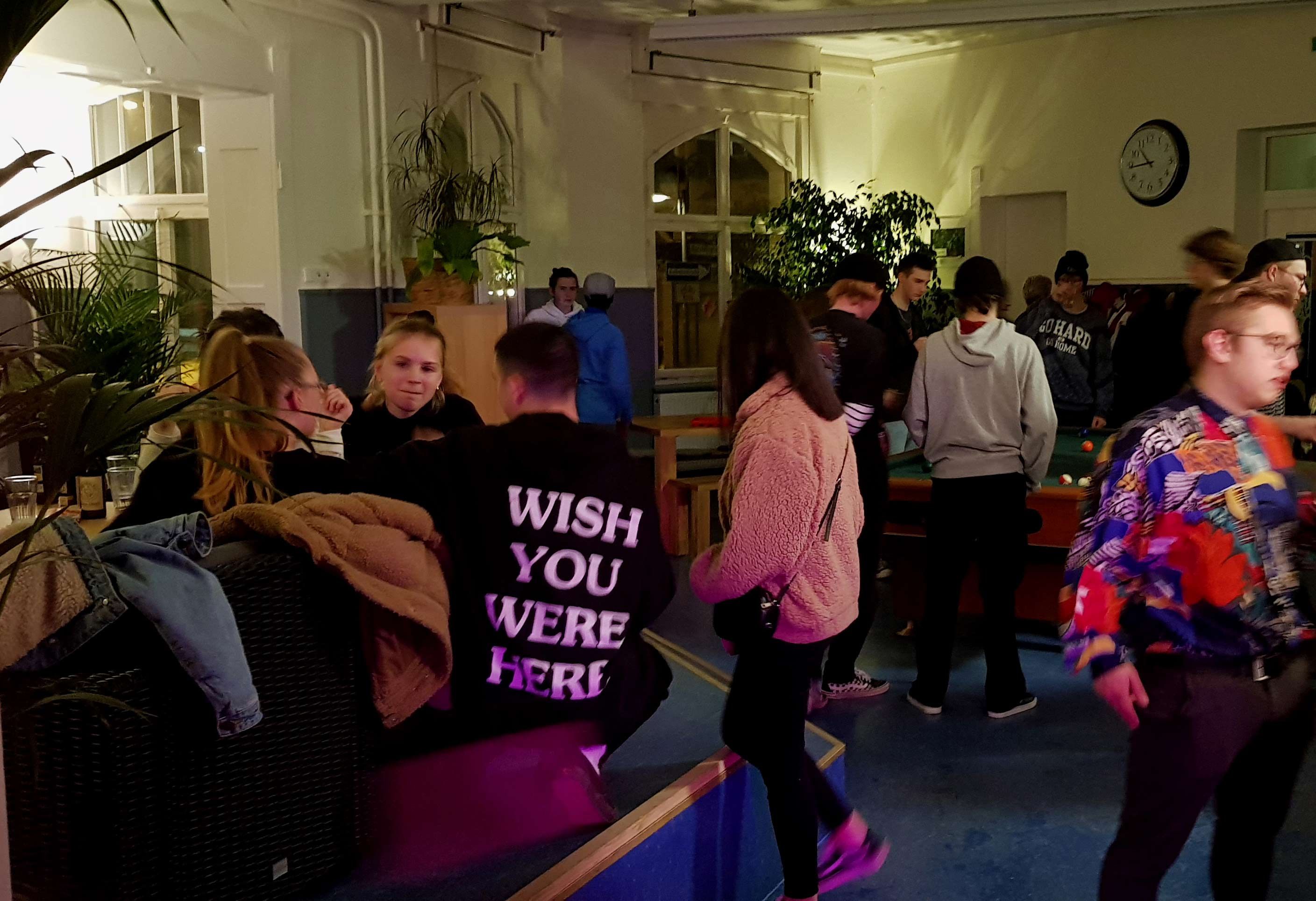 Hier treffen sich regelmäßig bis zu 30 Jugendliche, um Freund*innen zu sehen, neue Kontakte zu knüpfen oder einfach abzuschalten. Neben einer entspannten Atmosphäre warten viele Möglichkeiten zur Freizeitgestaltung: Brettspiele, Billard, Tischkicker und mehr sorgen für Abwechslung und Spaß. Auch das leibliche Wohl kommt nicht zu kurz – Getränke und Snacks gibt’s zu fairen Preisen, die auch für Schüler*innen erschwinglich sind.