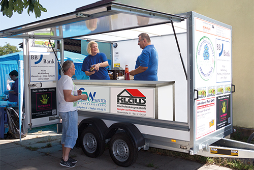 Seit diesem Jahr verfügt das F23 über ein cooles Eventmobil mit Kühlschrank, 3 Stehtischen und 5 Bierbankgarnituren, einem Grill sowie einem zusätzlichen Pavillon, dass es uns ermöglichen wird, zu Euch zu kommen. Wollt ihr in Eurem Stadtteil, in der Schule oder mit Eurem Verein oder Eurer Jugendgruppe ein Fest feiern, dann meldet Euch im F23. Wir unterstützen Euch gerne auch mit einer kleinen Anlage und DJ.