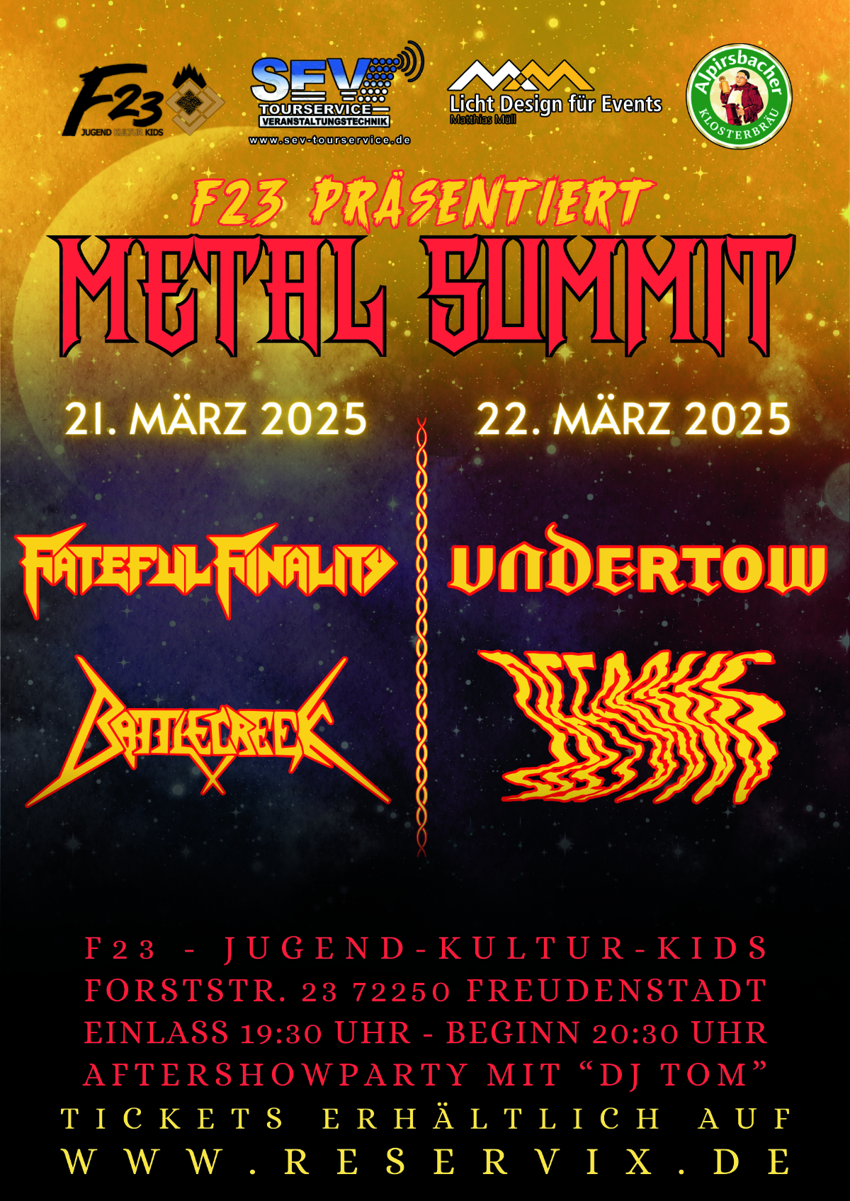 UNDERTOW existieren seit November 1993 und sind eine der langlebigsten Bands der deutschen Metalszene. UNDERTOW machen Metal. Doom, Sludge, Groove und Thrash-Metal in eine Topf und man erhält UNDERTOW. Aggressive Gitarrenmusik, klischeefrei, unverkrampft, straight und energiegeladen. Trademarks sind seit jeher der melodische Gesang und hochgradig wieder- erkennbare Songs(trukturen). UNDERTOW ernteten mit ihrem aktuellen Longplayer „Bipolar“ das 2022 bei El-Puerto Records erschien Bestnoten in den einschlägigen deutschen Fachmagazinen (Platz 3 im Soundcheck MetalHammer, Platz 4 RockHard). Von langsamen, groovigen Headbanger-Riffs bis hin zu schnellen Moshpit-Nackenbrechern ist alles vorhanden – „an epic peace of music“. Die Band hat mittlerweile an die 700 Auftritte (u.a. mit Volbeat, Testament, Katatonia, Kreator, Heaven Shall Burn, Crowbar, Down, Neaera, Emil Bulls, Paradise Lost uvm…). Vom Summer Breeze über RockHard und Metal Hammer Festival bis hin zum Rock am Härtsfeldsee und unzähligen kleineren Festivals hat die Band Live ihre Entertainer- fähigkeiten unter Beweis gestellt. Und auch nach mittlerweile 31 Jahren ist bei UNDERTOW die Motivation und der Ehrgeiz, die Liebe zu Ihrer Musik und der Spaß dabei ungebrochen!